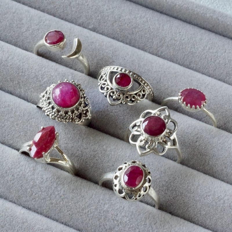 インドジュエリー /天然石ルビーの大粒SILVERリング/アンティーク ルビー・天然石・宝石・大粒・一粒・シルバーリング | iichi
